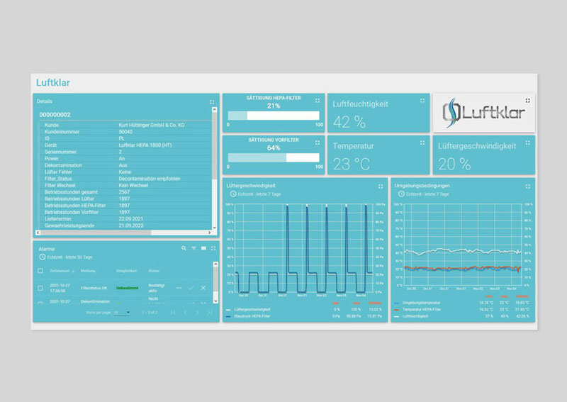 Even after delivery, we do not leave you alone. With our Luftklar Monitoring Service we are able to ensure continuous reliable and failure-free operation. Malfunctions or saturated filters are thus detected immediately and a service can be triggered.